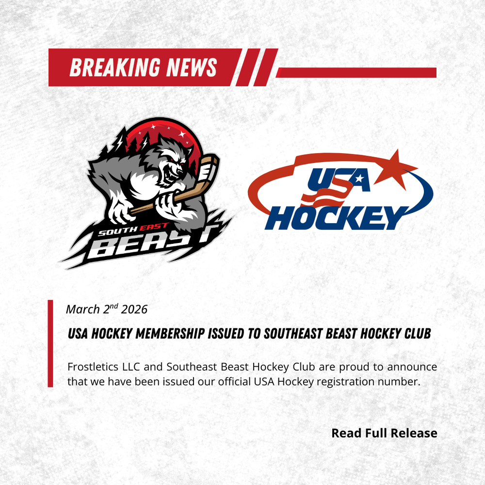 Frostletics LLC and Southeast Beast Hockey Club are proud to announce that we have been issued our official USA Hockey registration number.